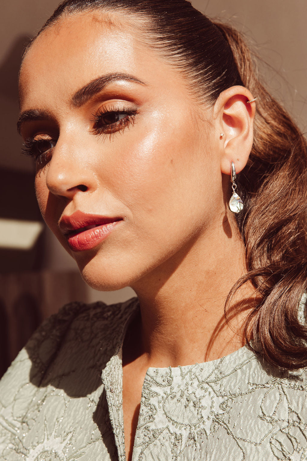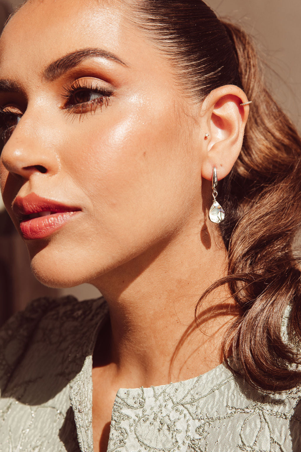 Een vleugje oceaan en een subtiele glans van helder zilver, deze oorbel combineert luxe met natuurlijke schoonheid.