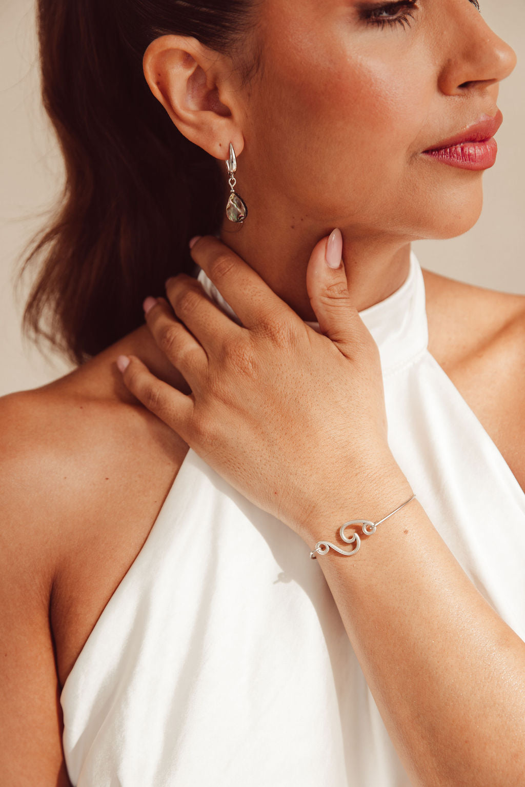 Een verfijnde oorbel met een zachte, elegante uitstraling, waarin de klassieke glans van een parel centraal staat.