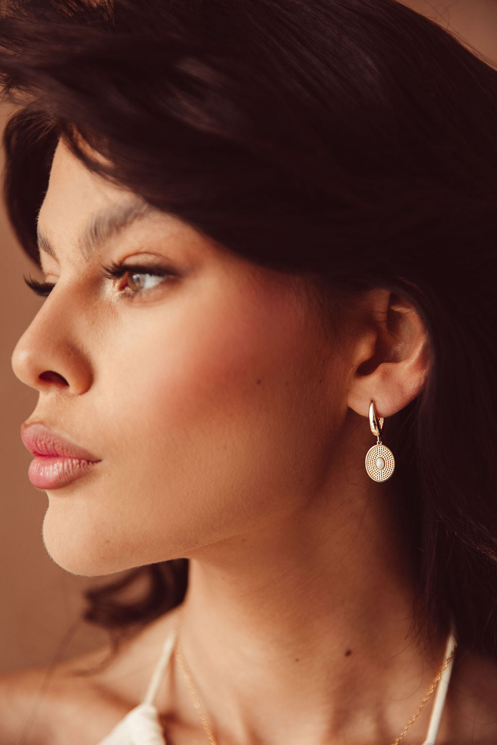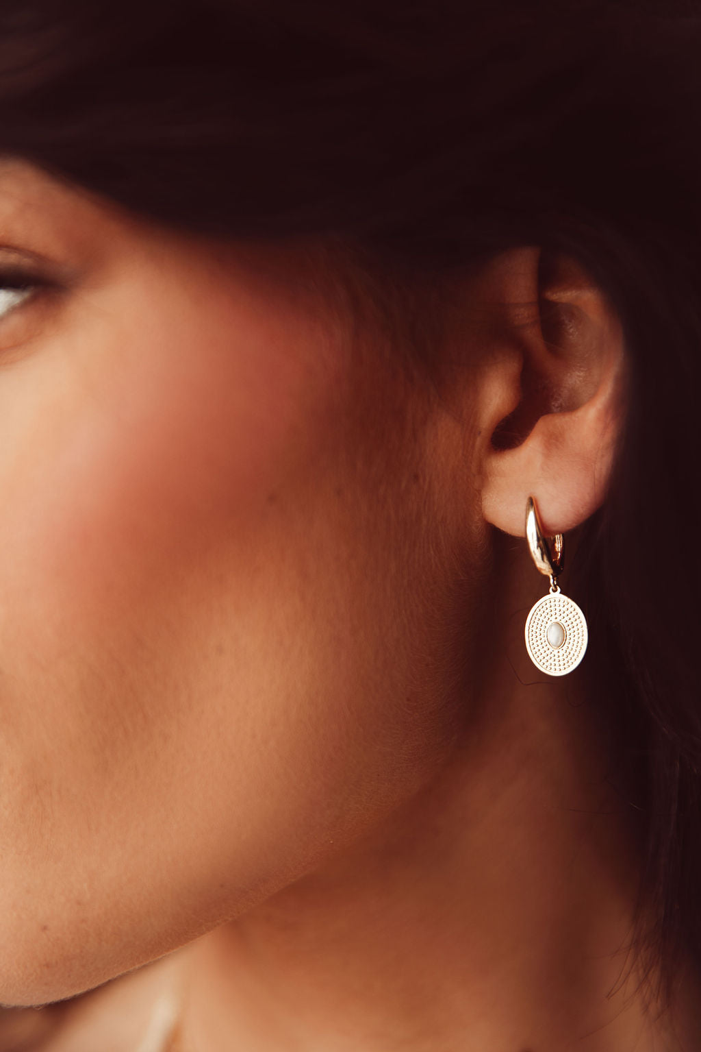 Deze oorbel heeft een sierlijke 18 k gold plated ring, met daaraan een bedel van echte schelp die is ingelegd en afgewerkt met een luxe 18k gold plating. Het warme goud en het natuurlijke parelmoer vormen samen een tijdloze eyecatcher waar je elke dag mee kunt stralen.