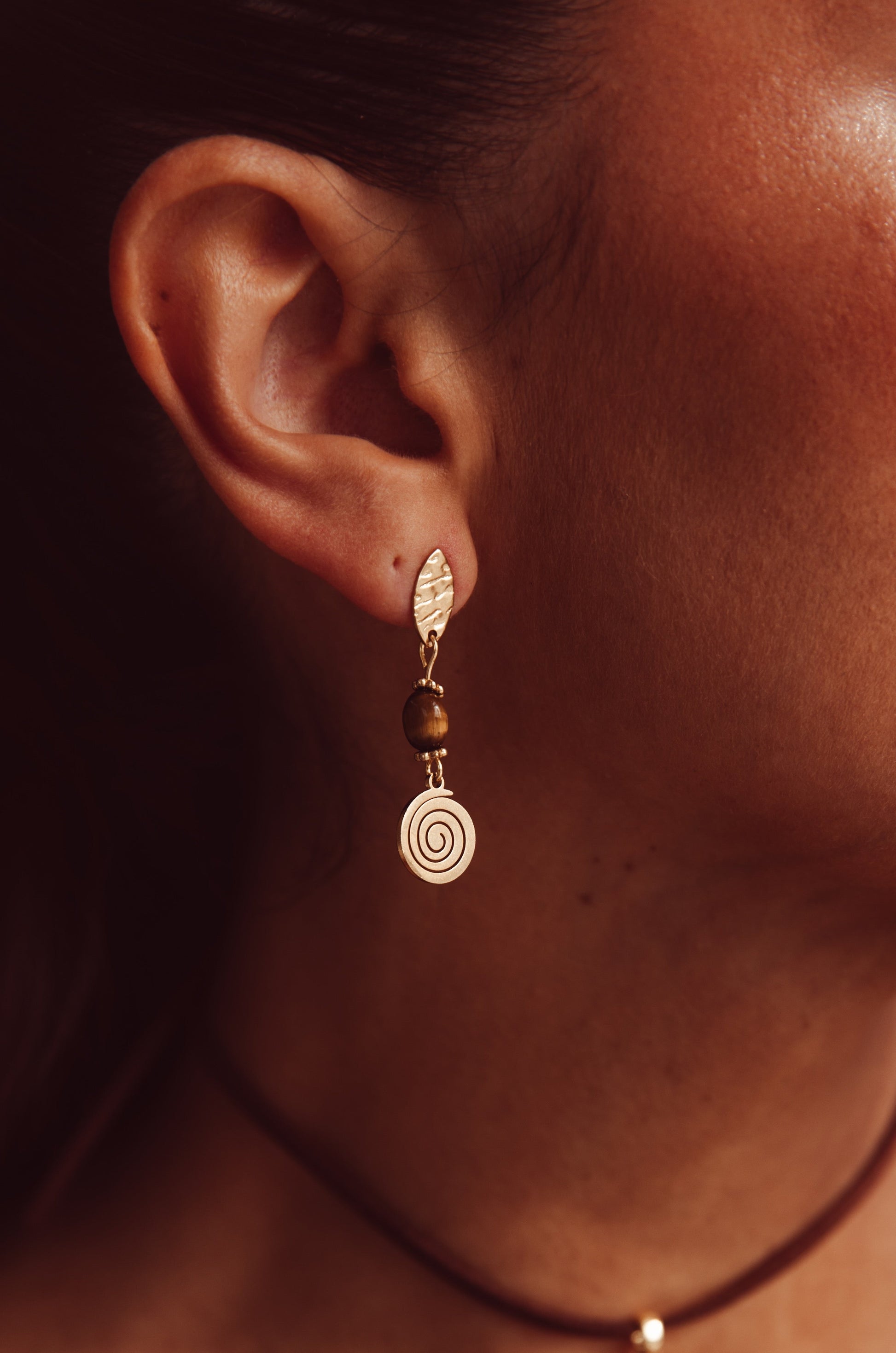 Deze karaktervolle oorbel is met de hand gemaakt van duurzaam Stainless Steel en afgewerkt met een bedel van echte tijgeroog edelsteen. Wanneer het licht erop valt, onthult de steen subtiele tekeningen en een kenmerkende zijdeachtige glans, alsof hij tot leven komt. Dit maakt elk paar uniek en vol karakter.